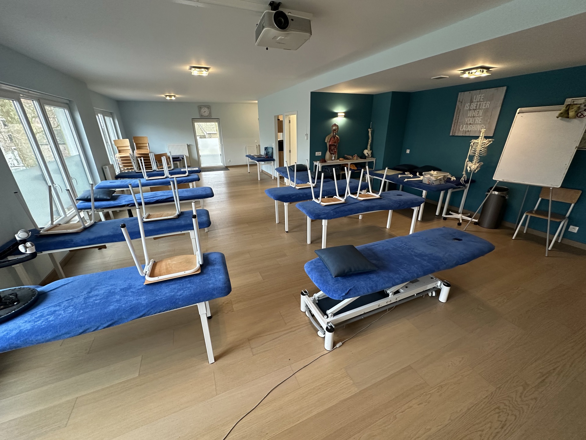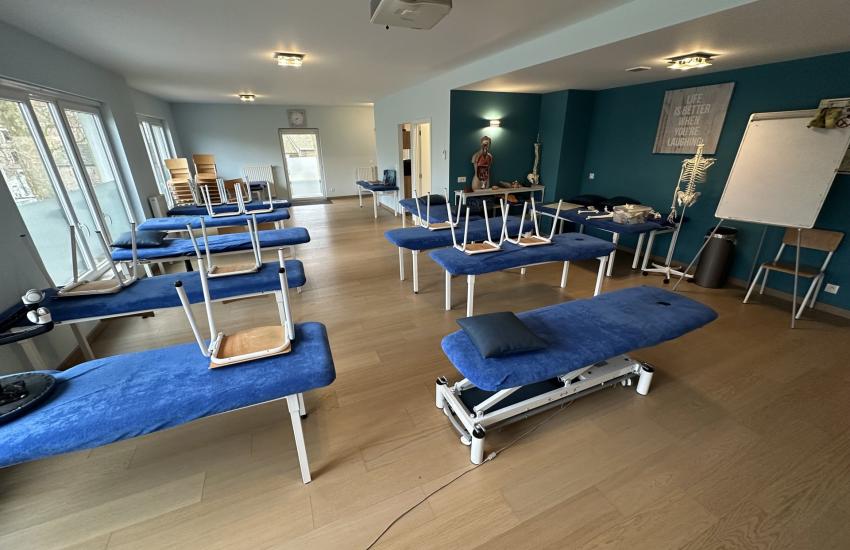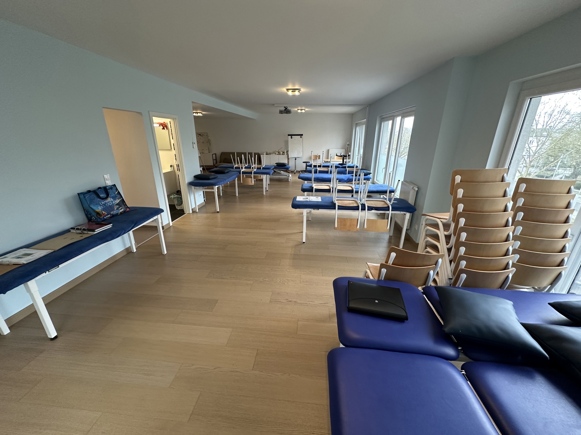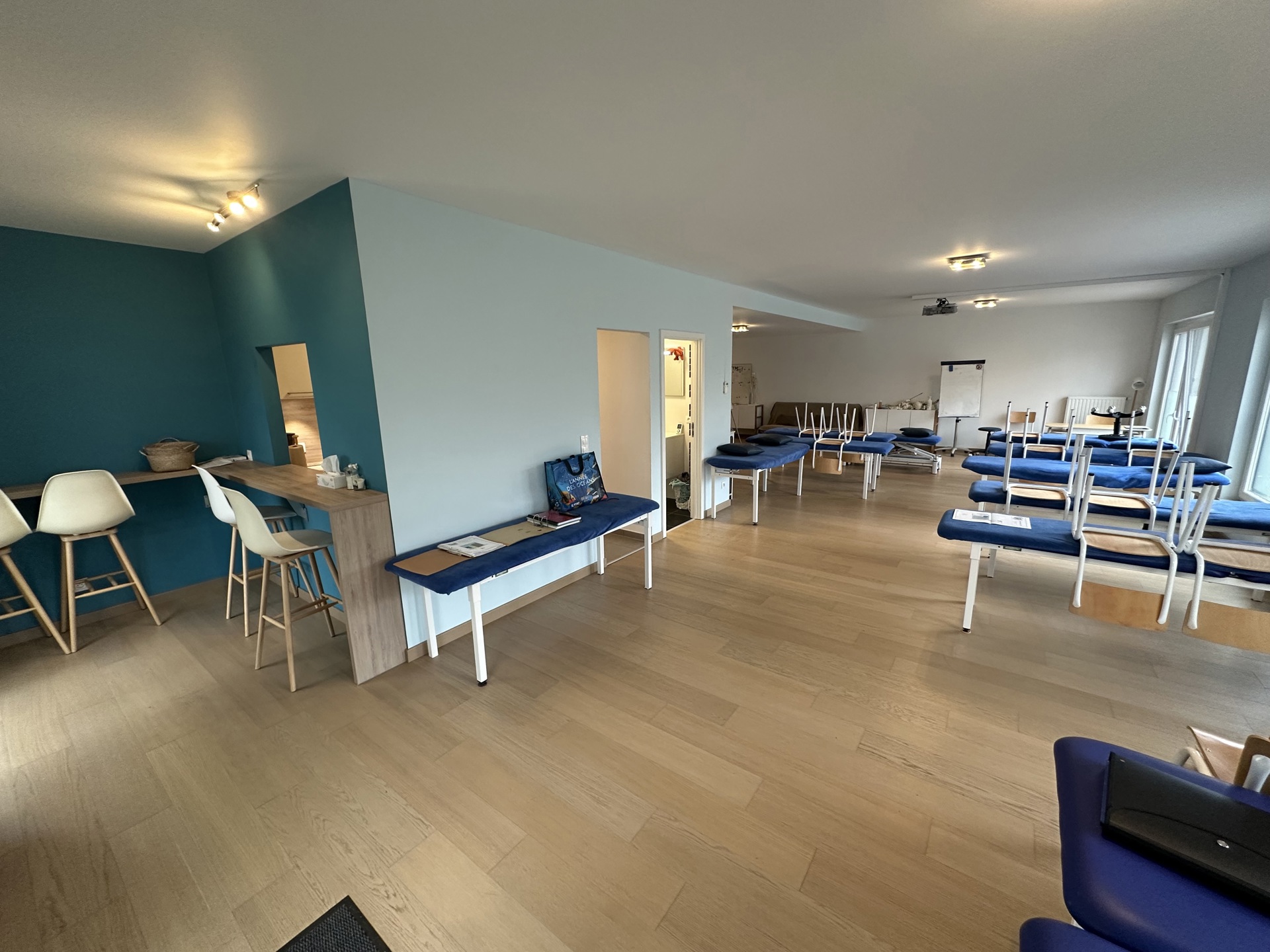 Cet appartement de 110 m² était initialement composé de deux chambres, mais il a subi des travaux de transformation et est actuellement aménagé en tant qu'espace ouvert permettant des cours de kinésithérapie.