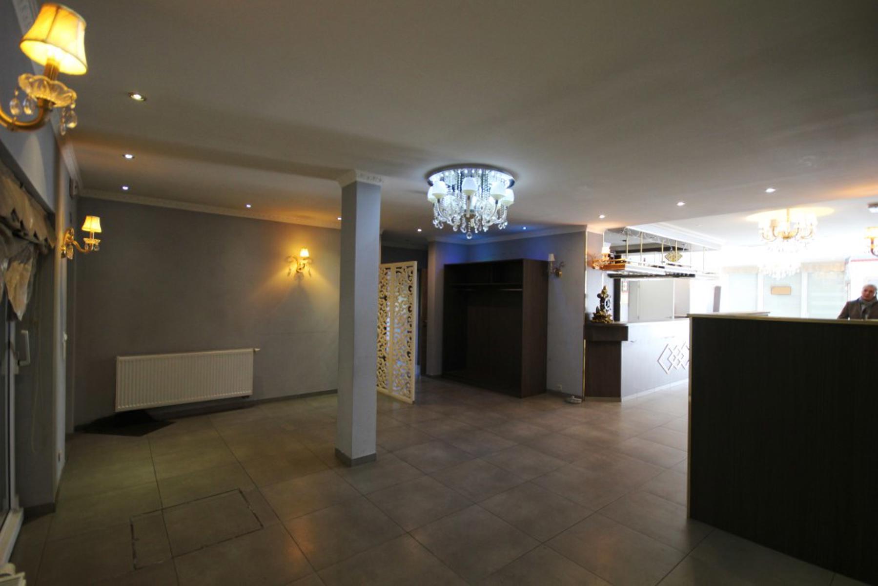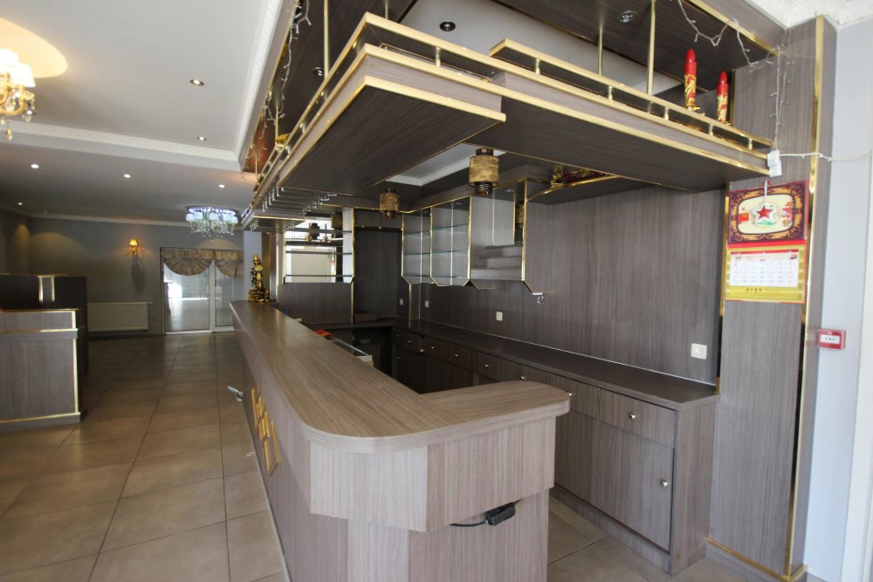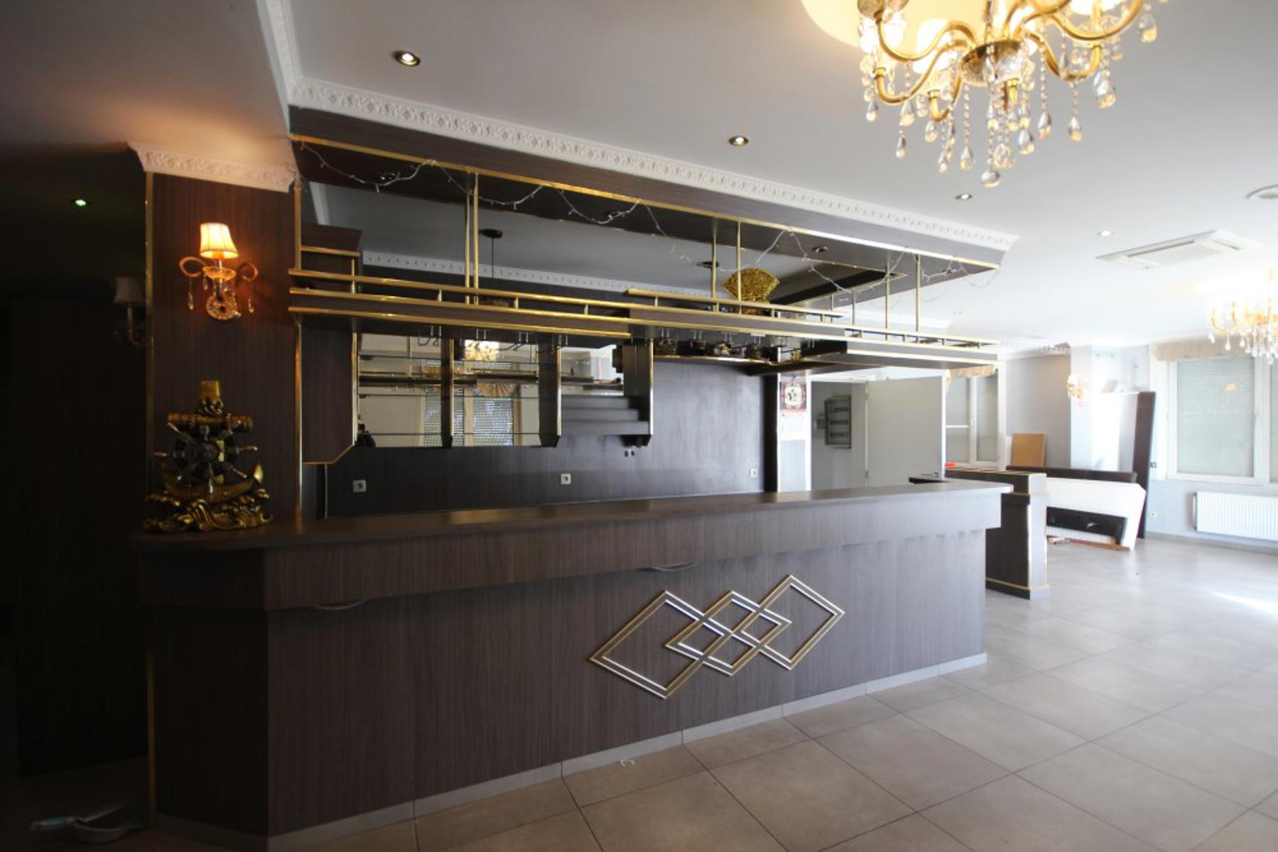 Rez: gd salle de restaurant+bar, 2pièces pv, wc hommes et dames, cuisine non équipée avec chambre froide.