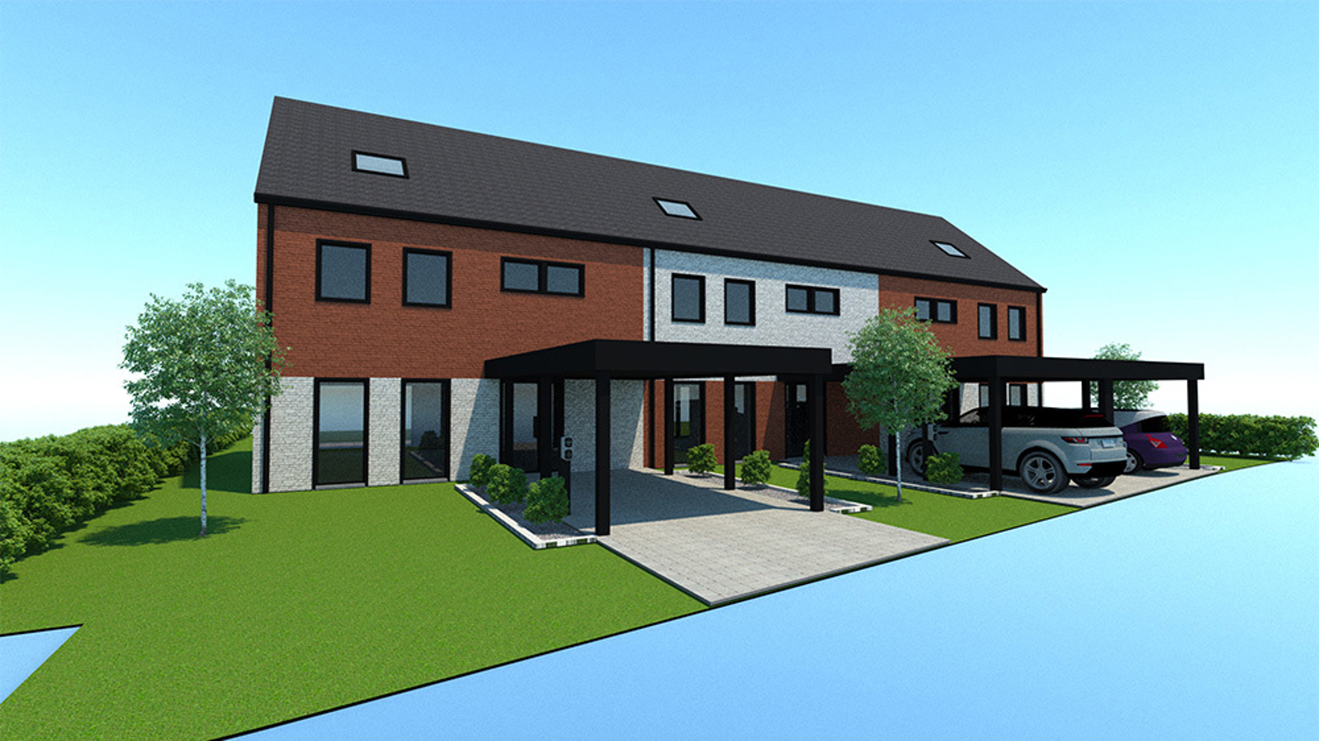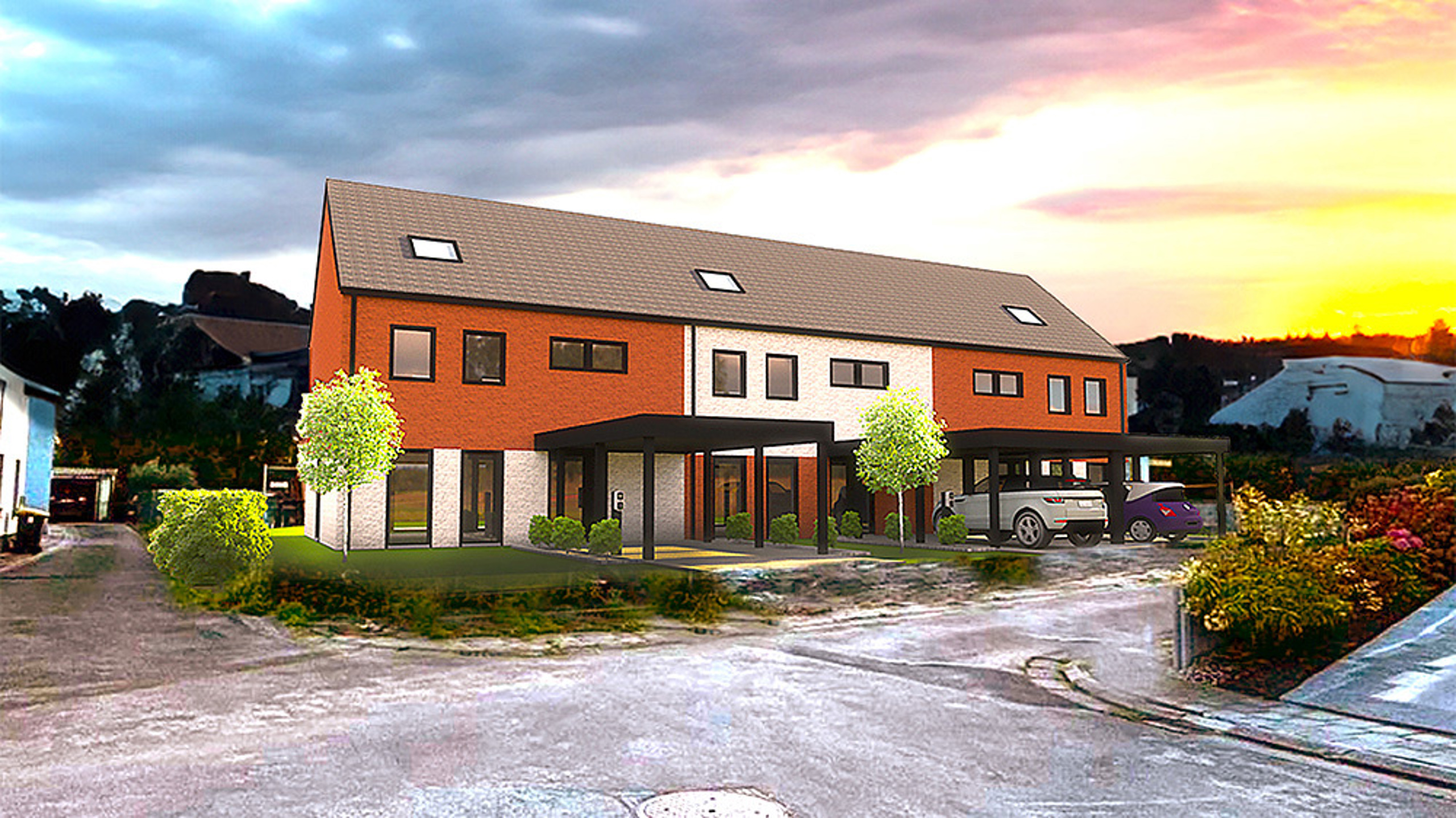 Prix: 189.000€ (prix hors TVA et sans frais), le prix comprend également un carport, les abords aménagés et l'engazonnement.