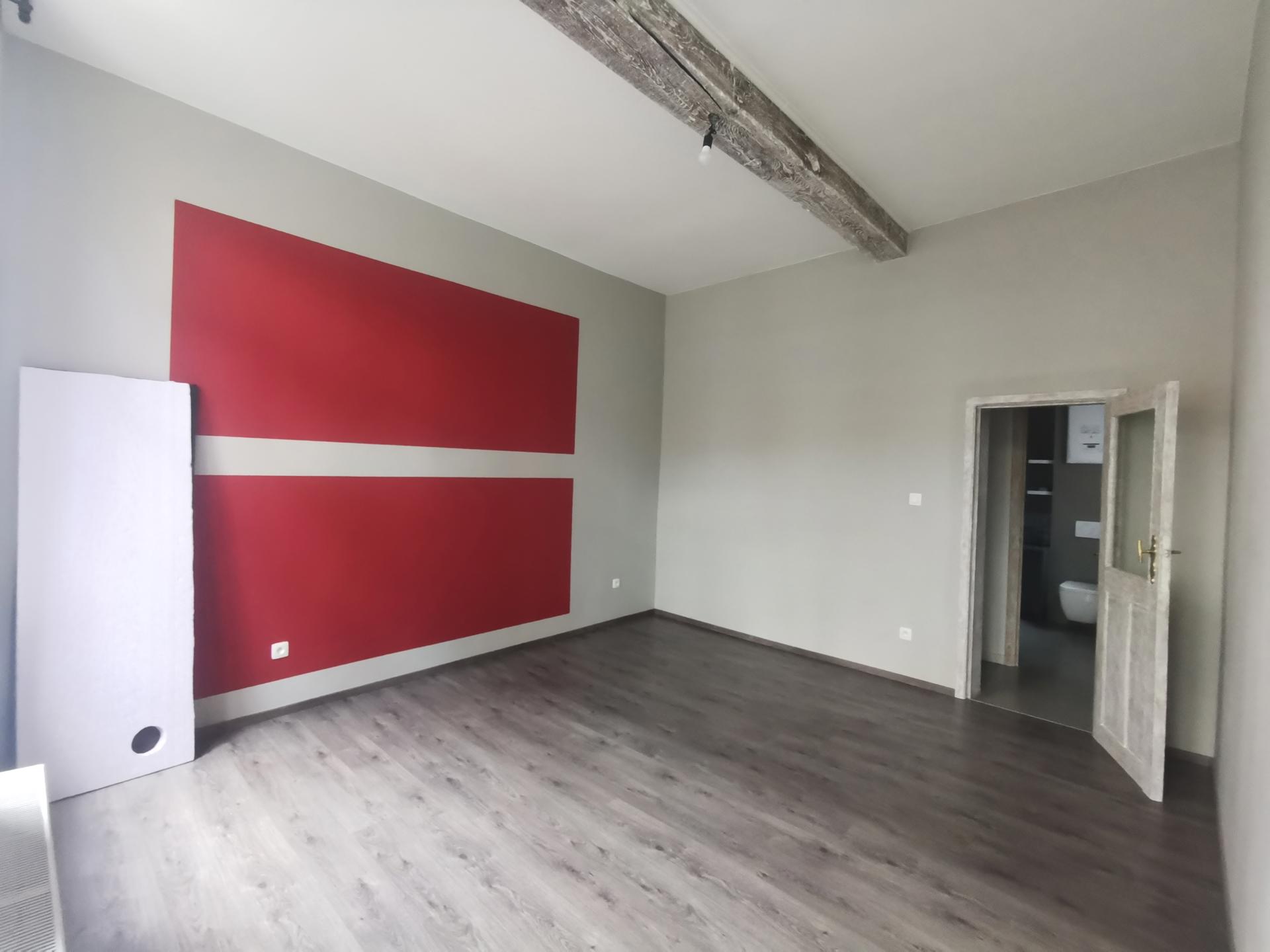 Au premier étage se trouve une salle de douche avec wc, une grande chambre de 18m², un bureau/ dressing de 6,5m².