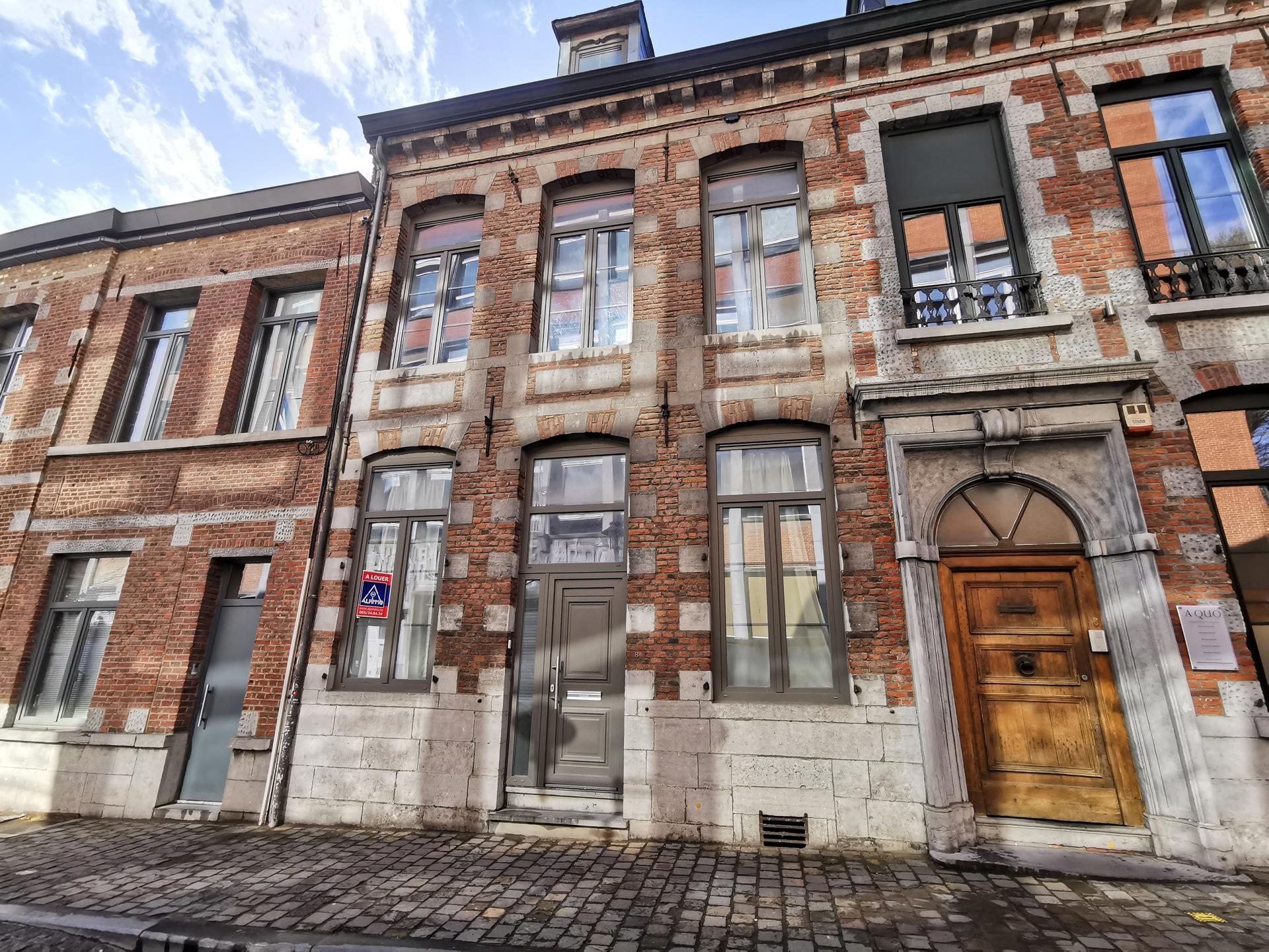 Belle maison rénovée avec avec goût et idéalement située dans le centre de Mons, à deux pas de la Grand-place, rue des Fossés 8 à Mons Cette maison est composée comme suit: au rez: pièce de vie de 18m², salon de 8m², cuisine ouverte entièrement équipée (lave-vaisselle, frigo, congélateur, micro-ondes, multiples rangements), wc séparé. Au premier étage se trouve une salle de douche avec wc, une grande chambre de 18m², un bureau/ dressing de 6,5m². Au deuxième étage: grande chambre mansardée de +/-18,5m² Loyer: 975€/mois. PEB Classe B, 157 kWh/m².an Infos et visites: Alpimmo au 065/34.84.24 ou Mlle Pollart au 0473/72.71.12 Voir sur carte