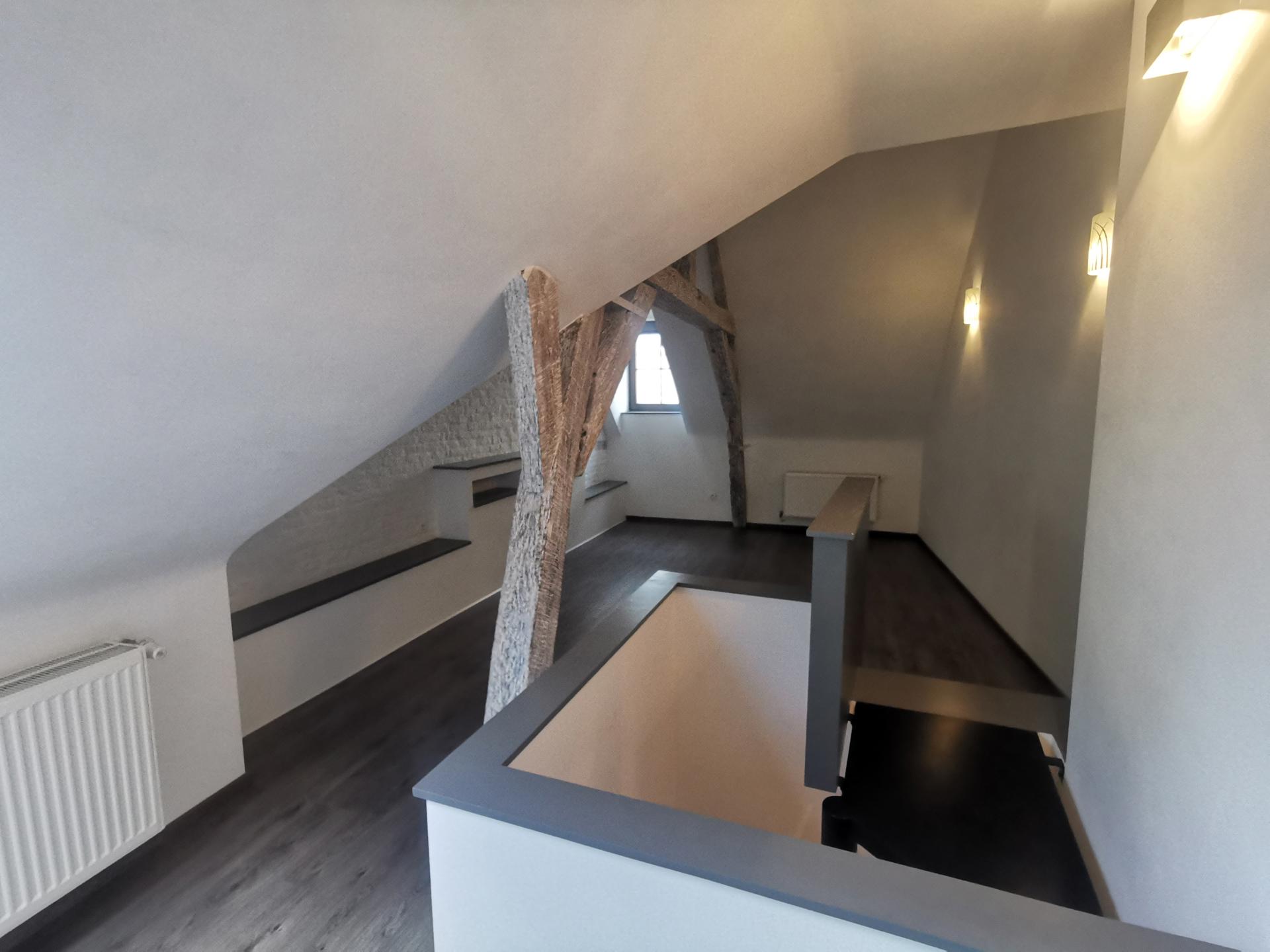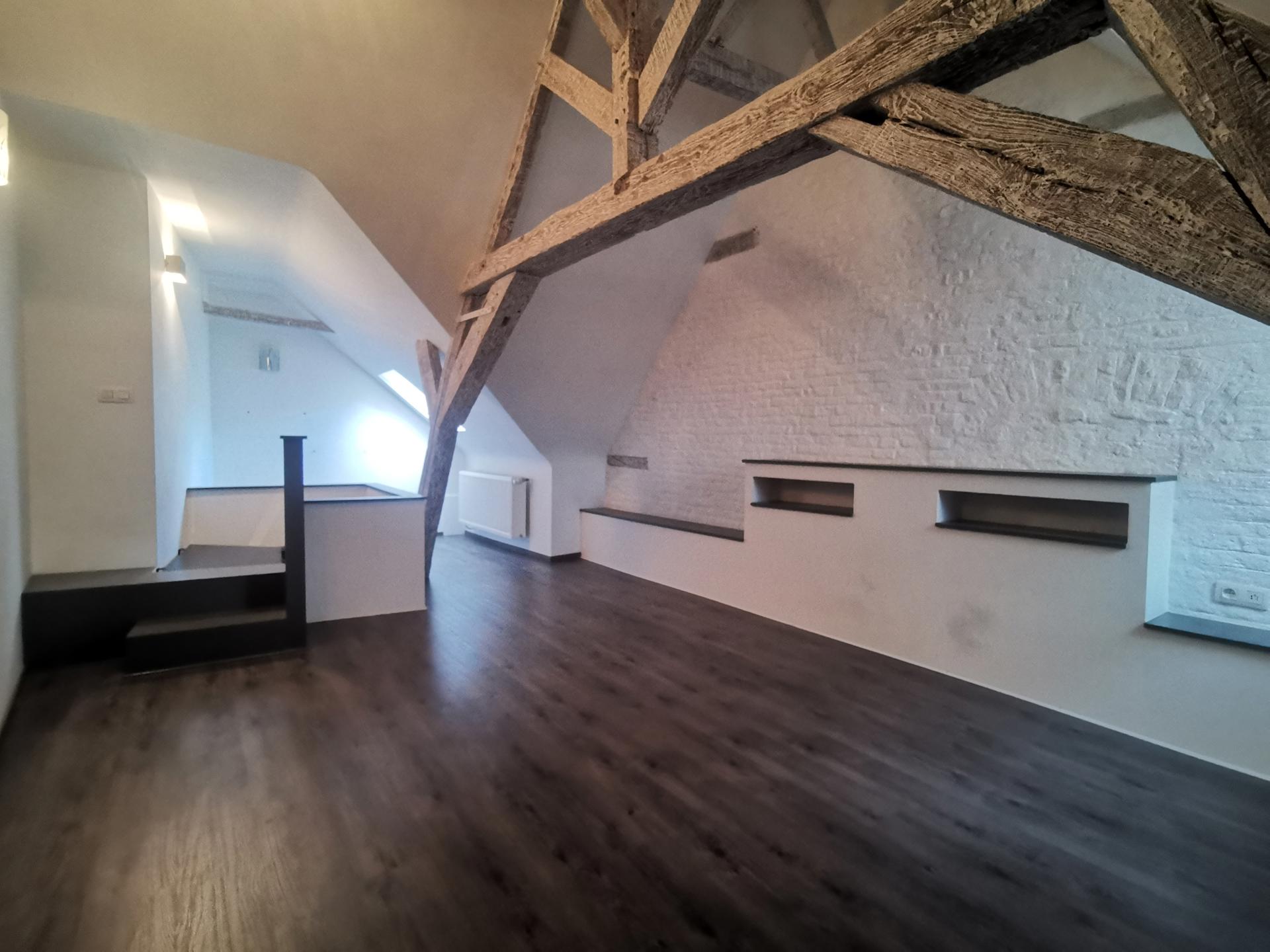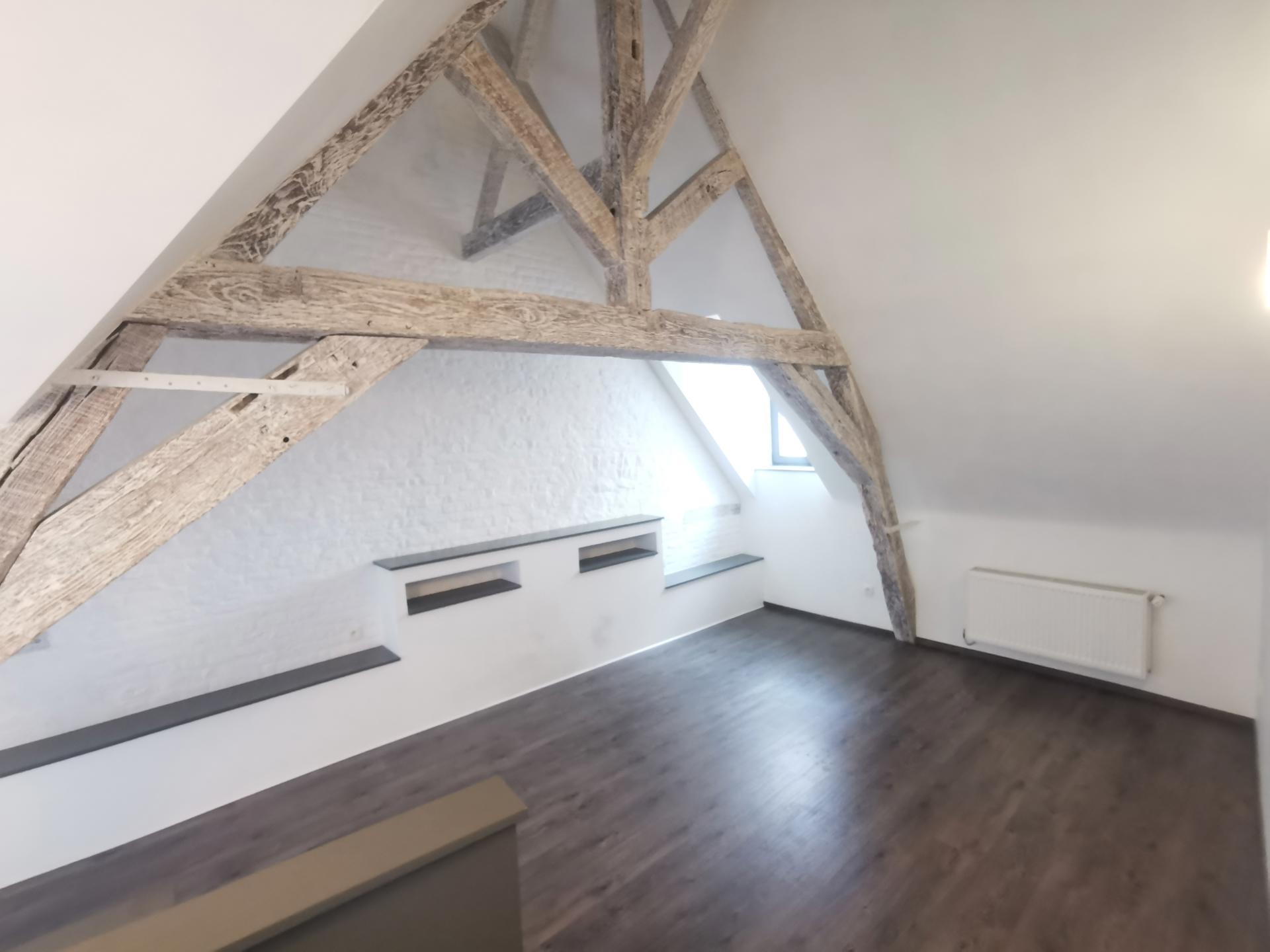 Au deuxième étage: grande chambre mansardée de +/-18,5m²