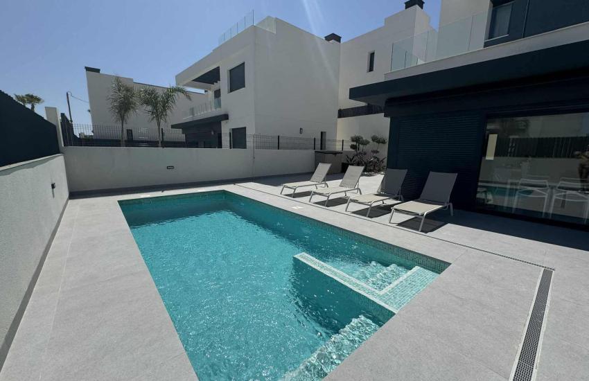 Villa de luxe avec piscine privée – Vacances à Algorfa, Espagne Offrez-vous des vacances de rêve dans cette somptueuse villa familiale située à Algorfa, au cœur de la Costa Blanca. Idéale pour un séjour ensoleillé entre amis ou en famille, cette propriété spacieuse et élégante vous accueille pour un minimum de 10 jours. Caractéristiques principales • 4 chambres confortables avec literie haut de gamme et rangements • 4 salles de bains modernes, toutes équipées pour votre confort • 2 salons pour des moments de détente et de convivialité • Cuisine entièrement équipée avec électroménager moderne • Buanderie pratique avec lave-linge et sèche-linge • Piscine privée entourée d’une terrasse aménagée Atouts • Décoration soignée, atmosphère chaleureuse et prestations haut de gamme • Situation idéale, proche des plages de la Costa Blanca, des commerces et des restaurants • Climatisation, Wi-Fi et tout le confort nécessaire pour un séjour sans souci • Cadre calme et sécurisé, parfait pour se ressourcer Localisation Algorfa est un charmant village espagnol offrant authenticité, soleil et paysages méditerranéens. Vous pourrez profiter des plages, découvrir les marchés locaux et explorer les environs riches en culture et en gastronomie. Infos : Aldo ZAMBITO 0475/25.03.16 Voir sur carte