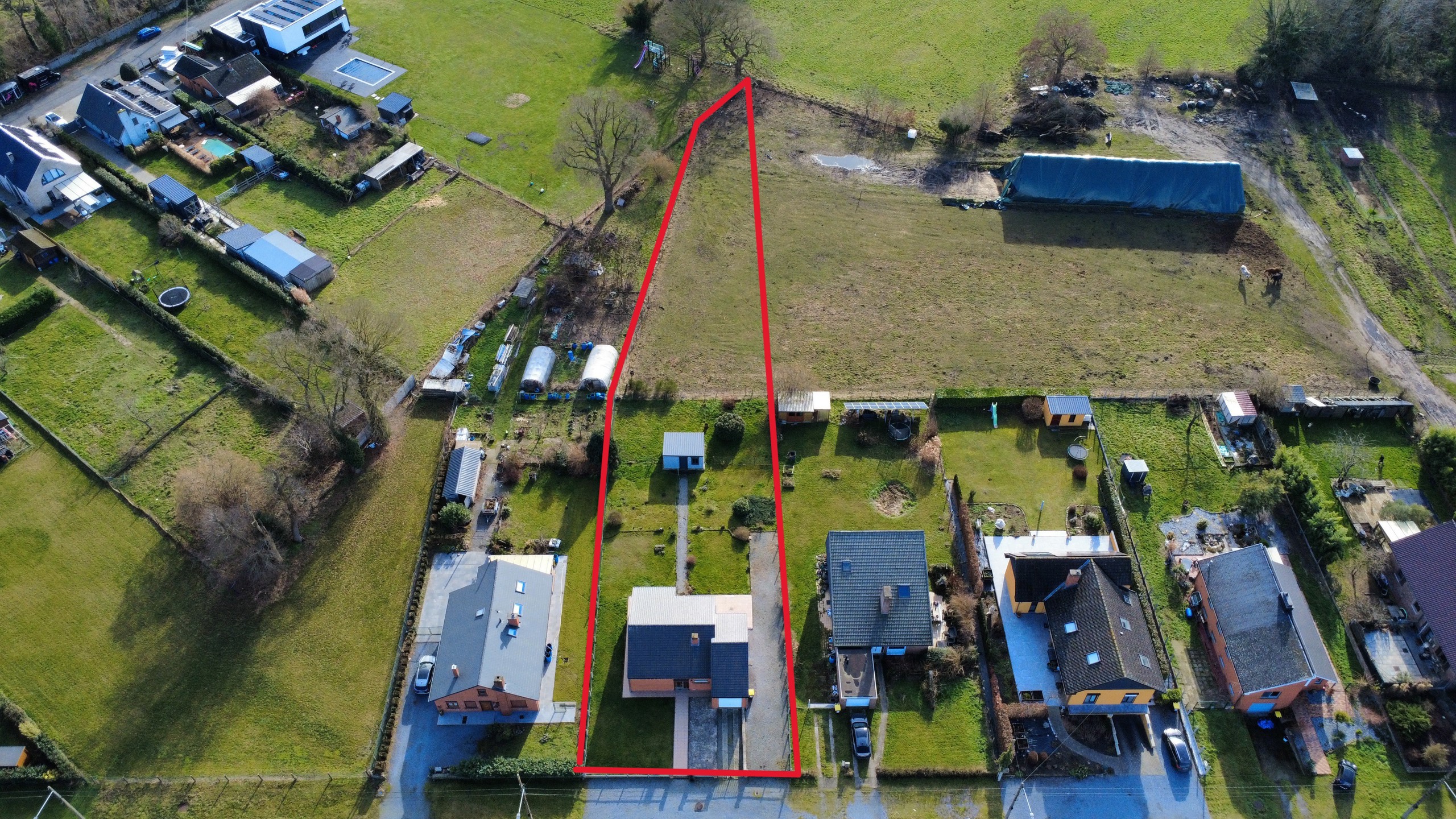 Sur un superbe terrain de 20 ares, cette propriété développe environ 100 m² habitables et offre de nombreuses possibilités d’aménagement pour un projet résidentiel sur mesure.